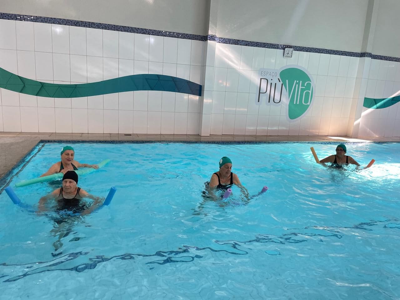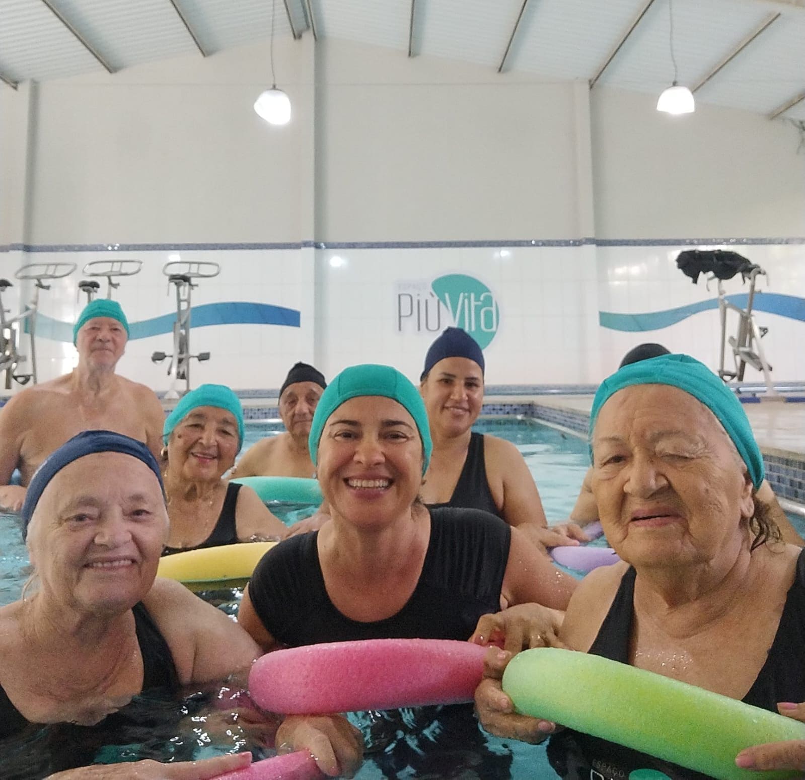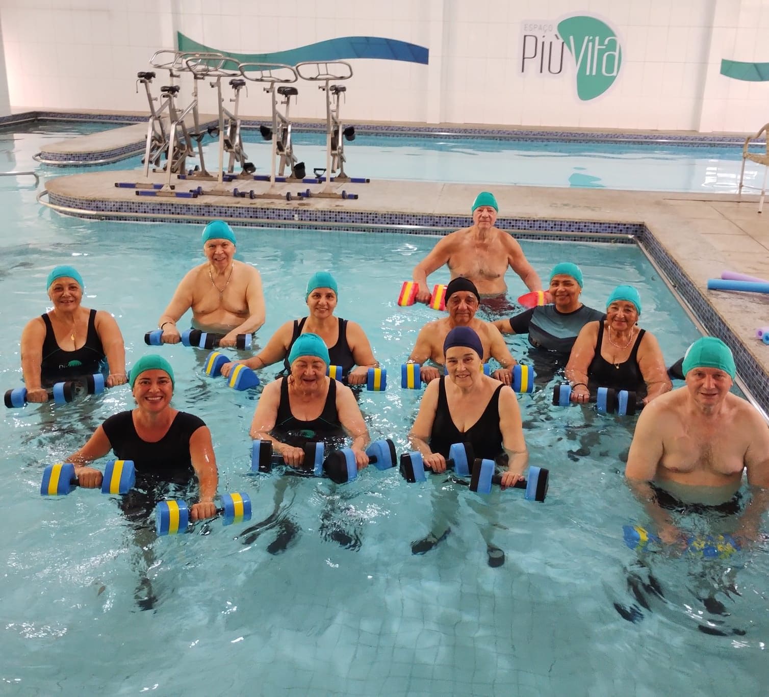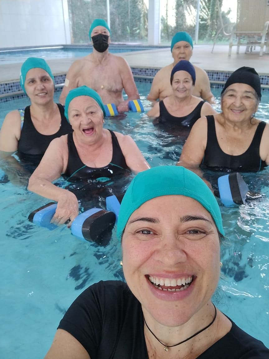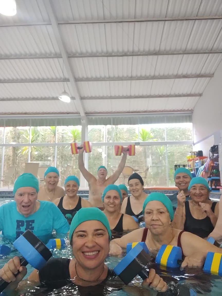 Atividade física realizada em piscina, proporciona condicionamento físico geral, fortalecimento muscular e melhora da resistência cardiorrespiratória com uma sequência de exercícios rítmicos executados numa intensidade moderada e de forma ininterrupta.