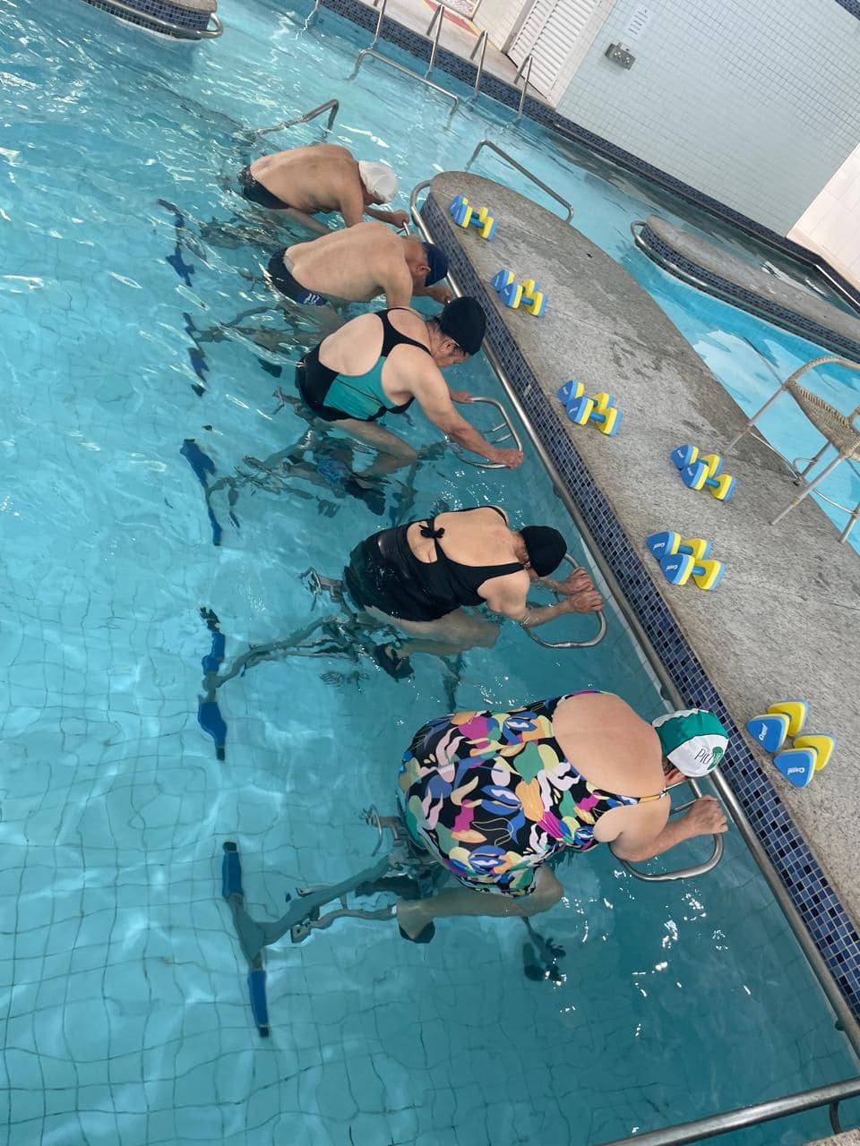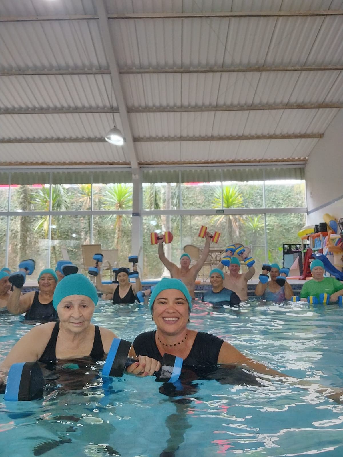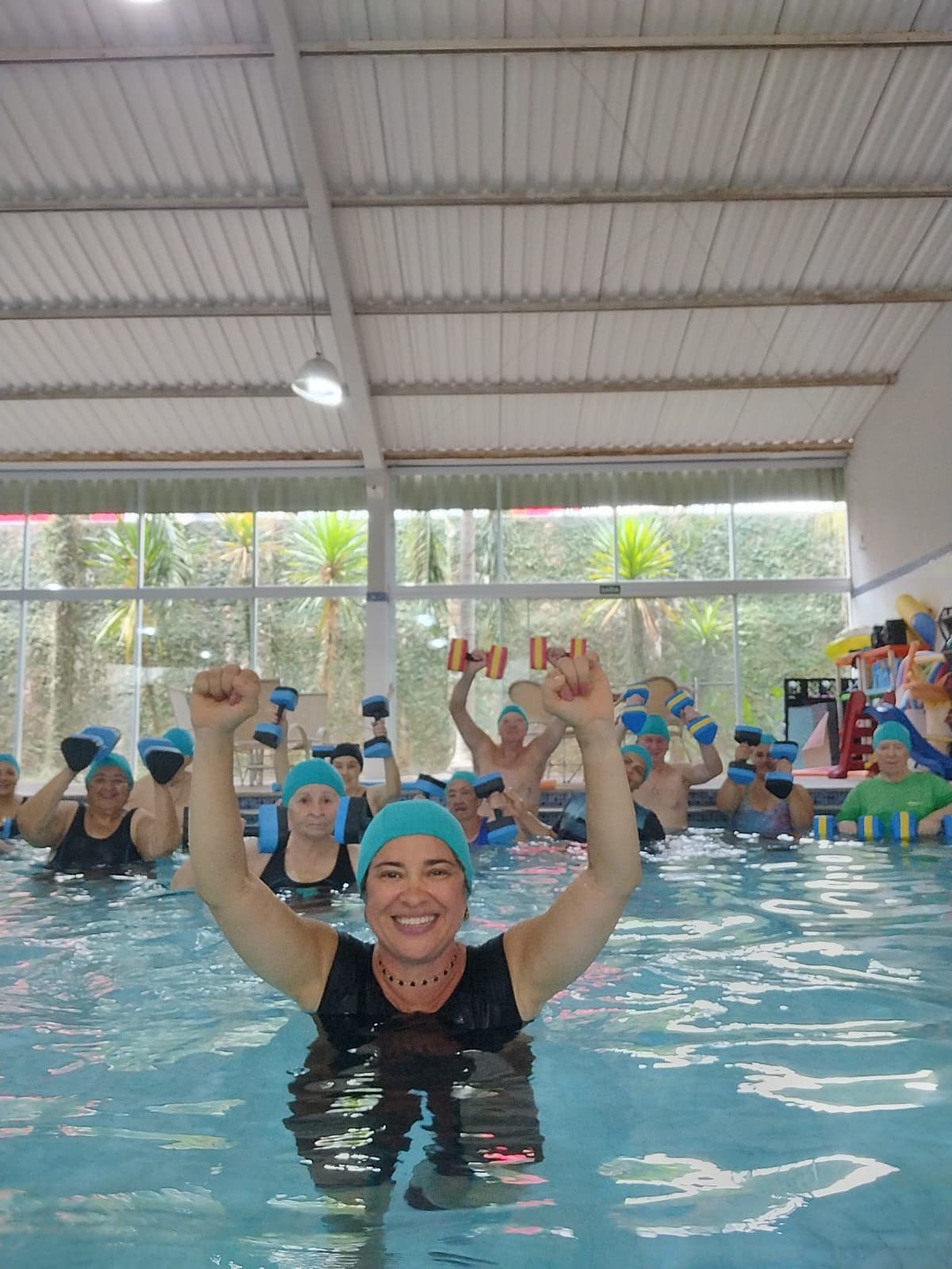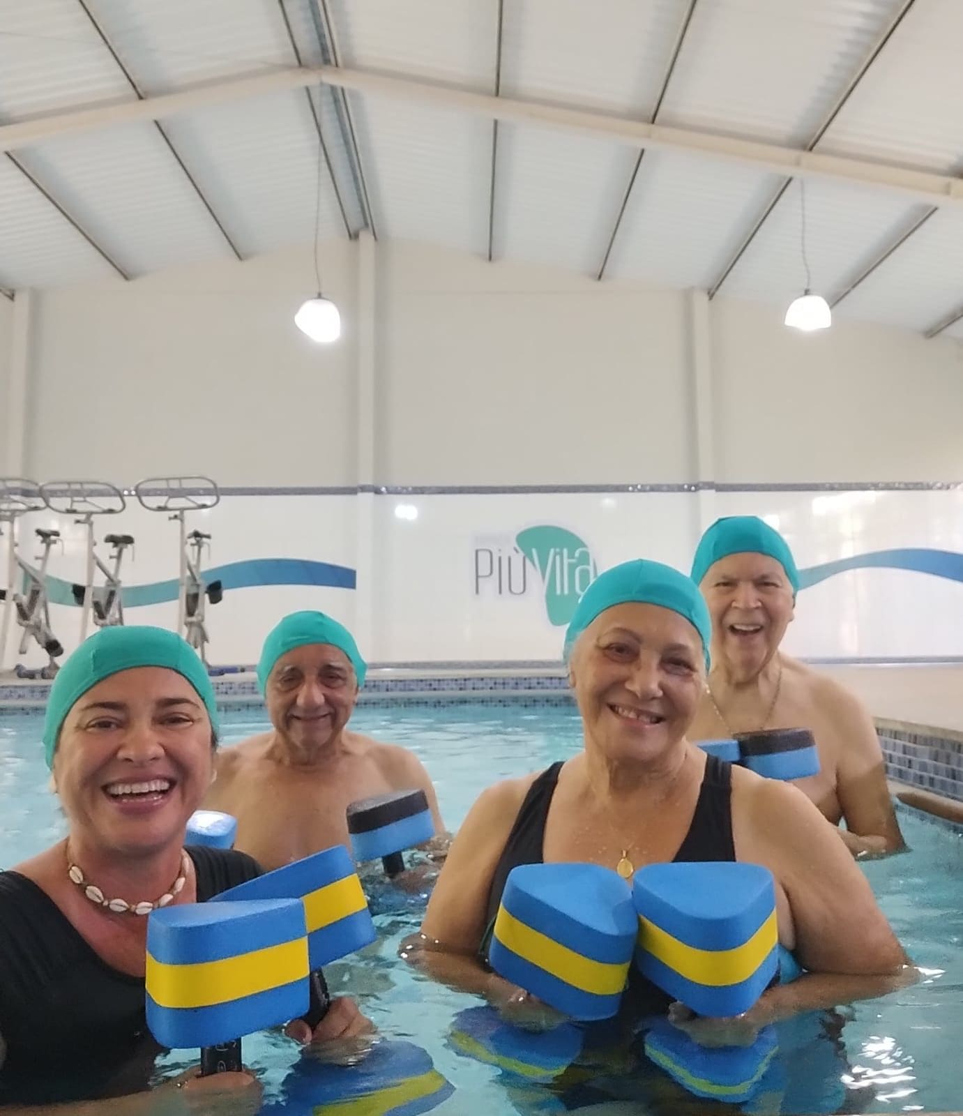 Atividade física realizada em piscina, proporciona condicionamento físico geral, fortalecimento muscular e melhora da resistência cardiorrespiratória com uma sequência de exercícios rítmicos executados numa intensidade moderada e de forma ininterrupta.