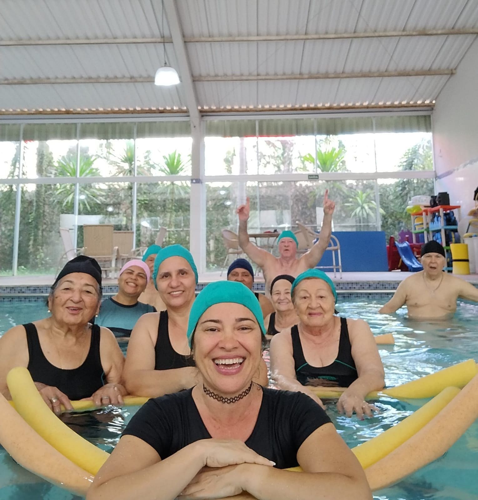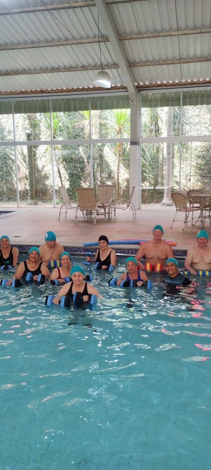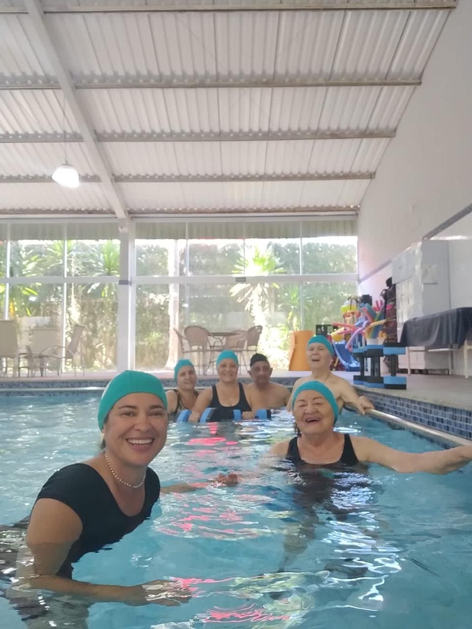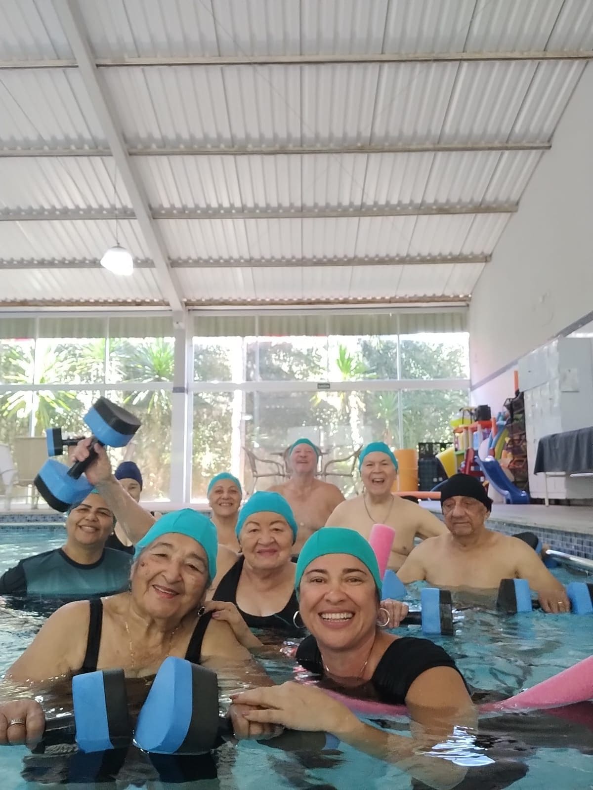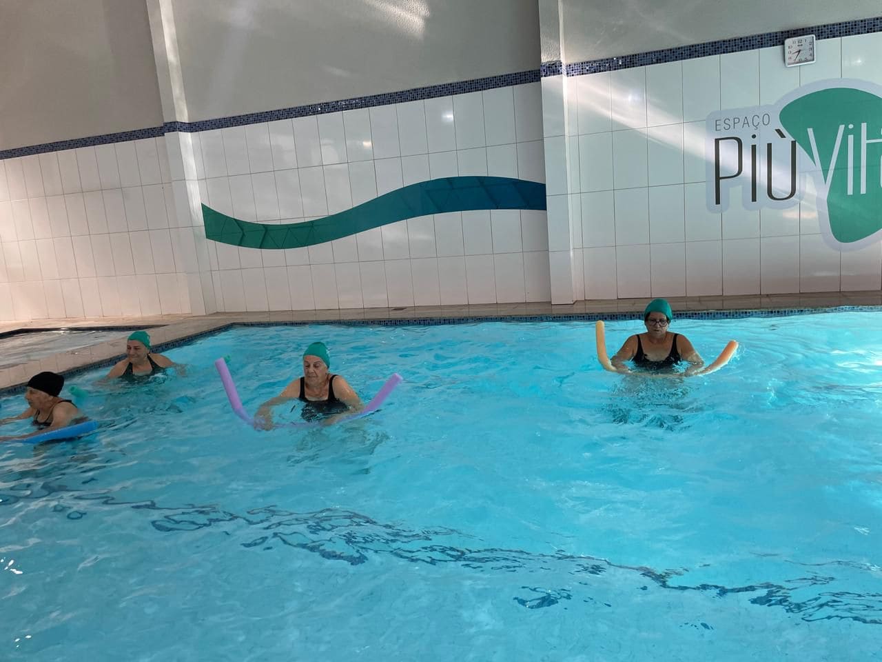 Atividade física realizada em piscina, proporciona condicionamento físico geral, fortalecimento muscular e melhora da resistência cardiorrespiratória com uma sequência de exercícios rítmicos executados numa intensidade moderada e de forma ininterrupta.