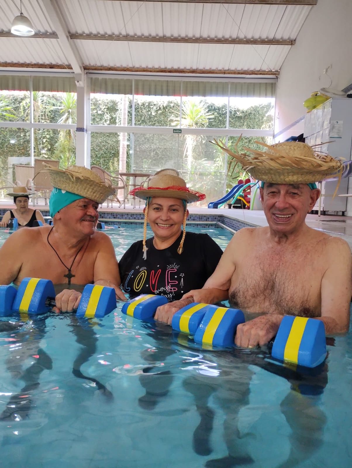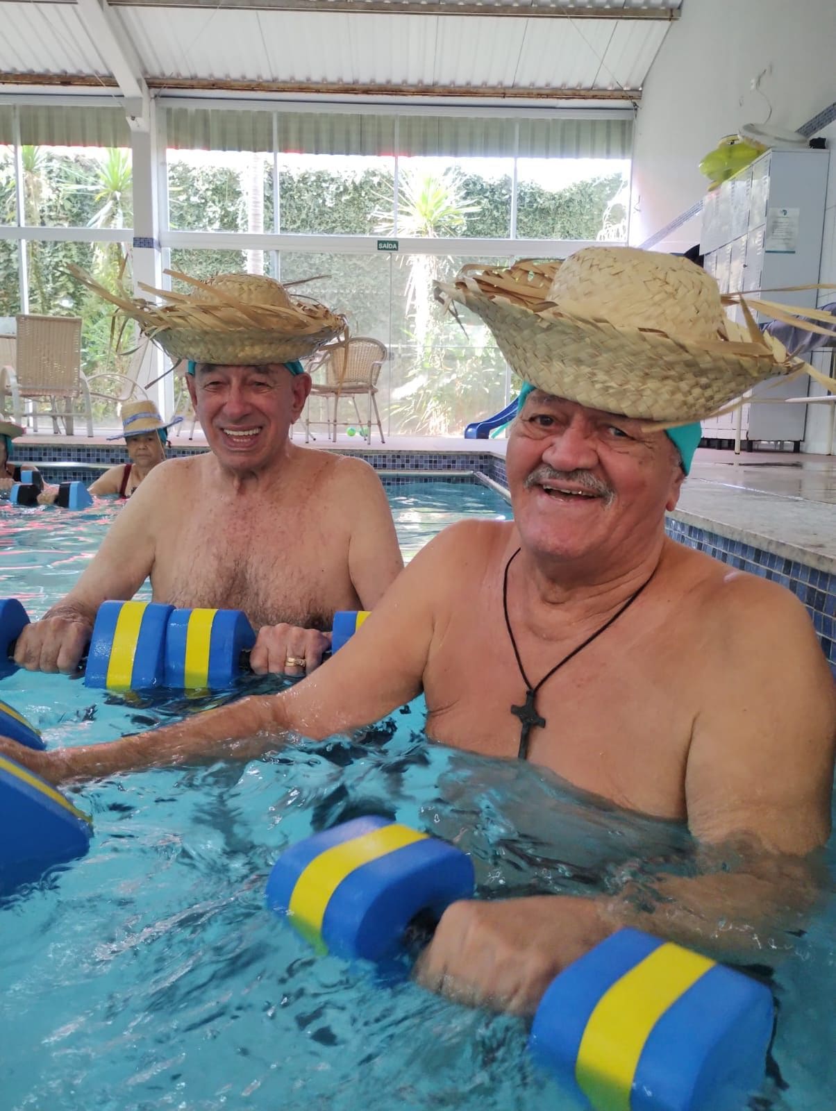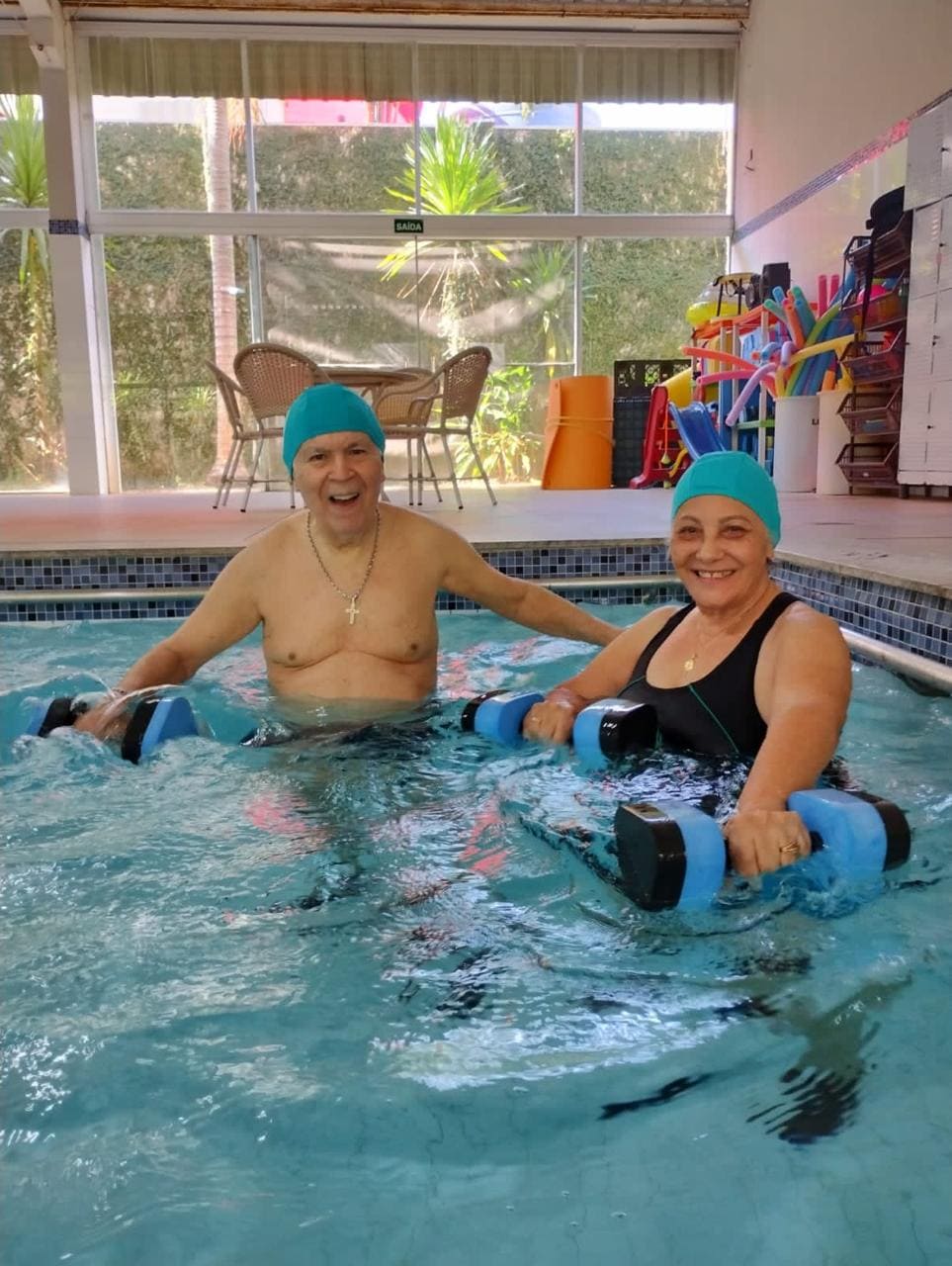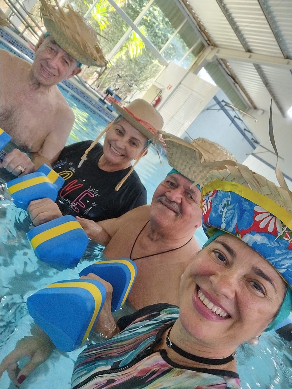 Atividade física realizada em piscina, proporciona condicionamento físico geral, fortalecimento muscular e melhora da resistência cardiorrespiratória com uma sequência de exercícios rítmicos executados numa intensidade moderada e de forma ininterrupta.